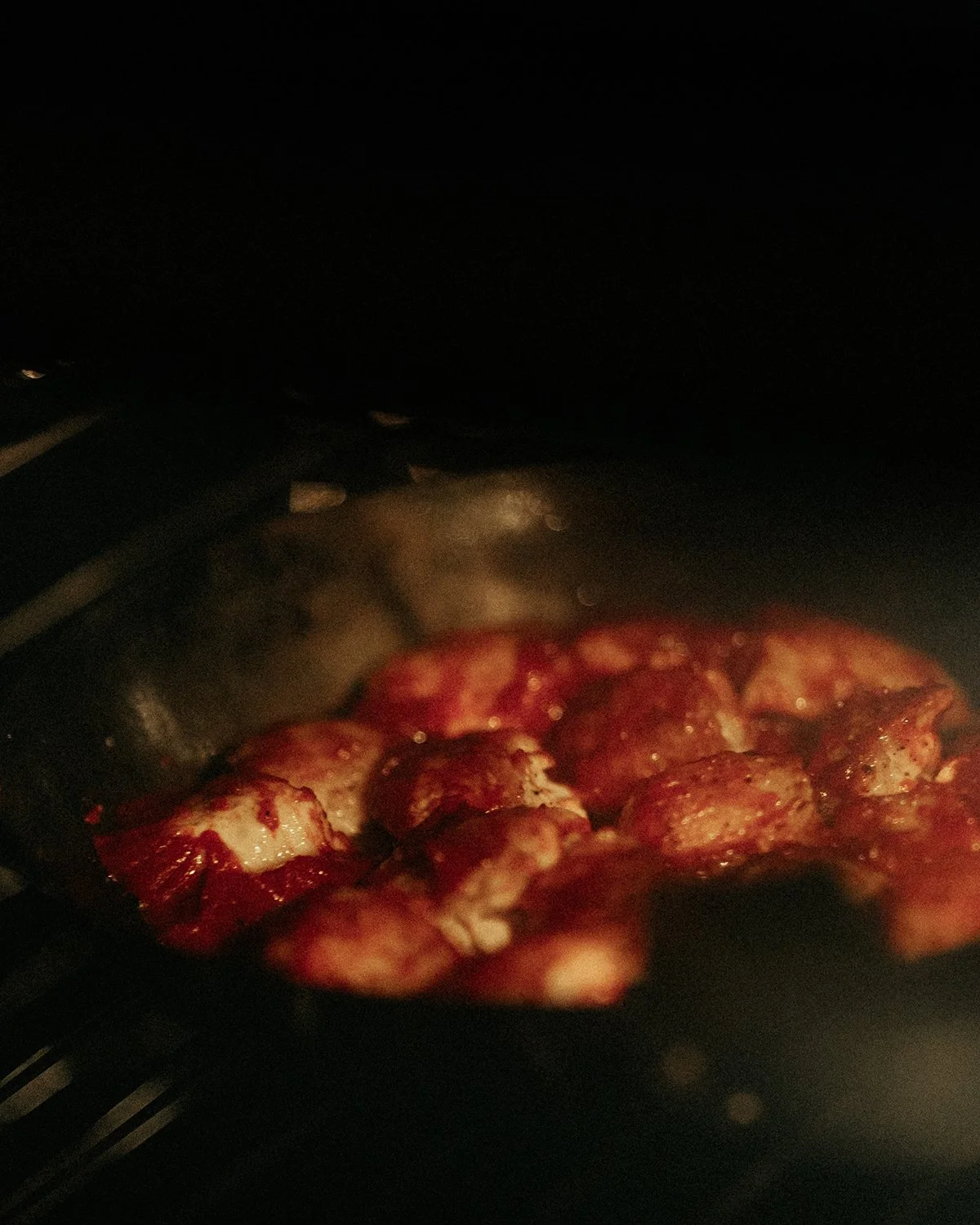 Glazúr: A BBQ összetevőit forrald össze egy kis lábasban, amíg sűrű és sötét nem lesz. (A forralás kihagyható, ha jól összedolgozod). Kend le alaposan a szárnyakat a mázzal, majd tedd őket 200°C-os sütőbe 5–8 percre, amíg a szósz rákaramellizálódik és vonzóan csillogó, ragadós réteget képez.